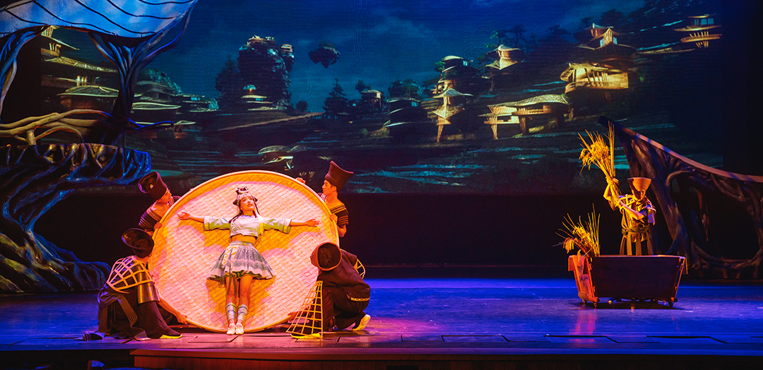 • 《煙雨張家界》通過一個發(fā)生在古老山寨里的愛情故事,把當(dāng)?shù)叵让駛兊纳顖鼍?、勞作場面搬上舞臺。